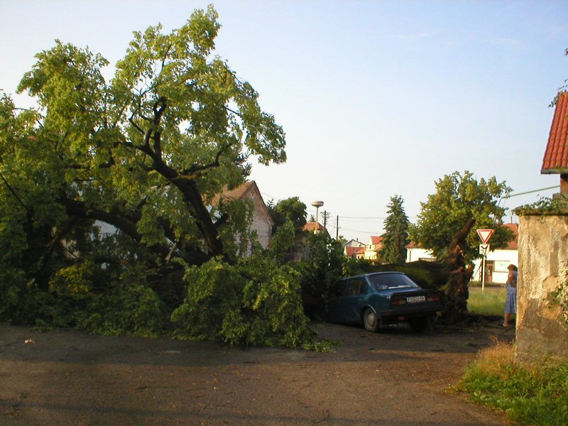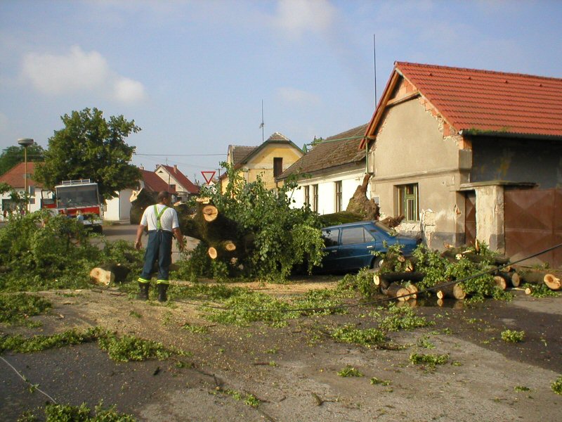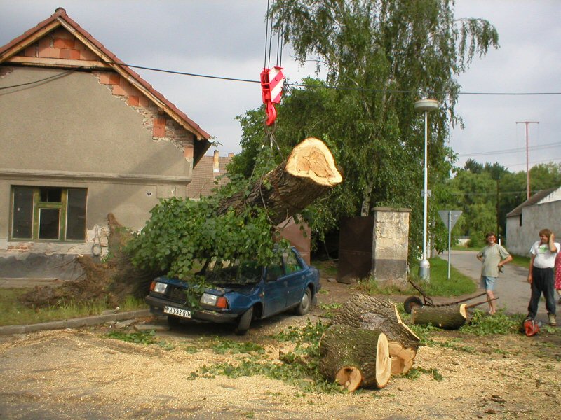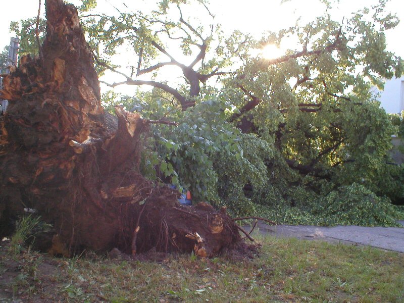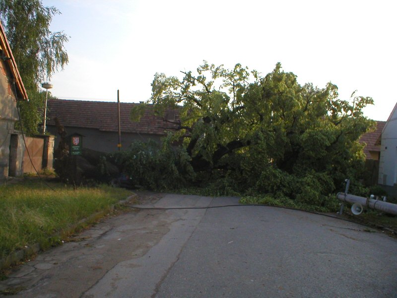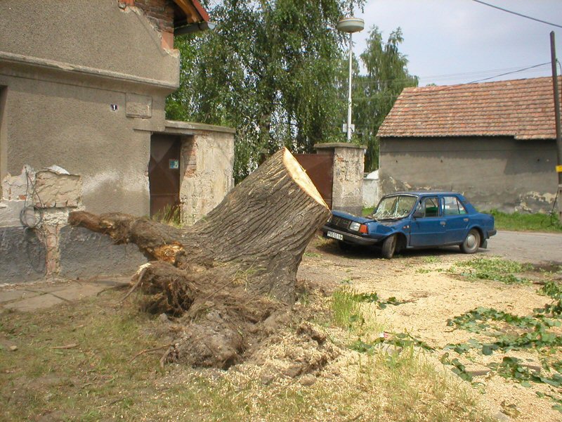 Zánik státem chráněné lípy po vichřici roku 2003.