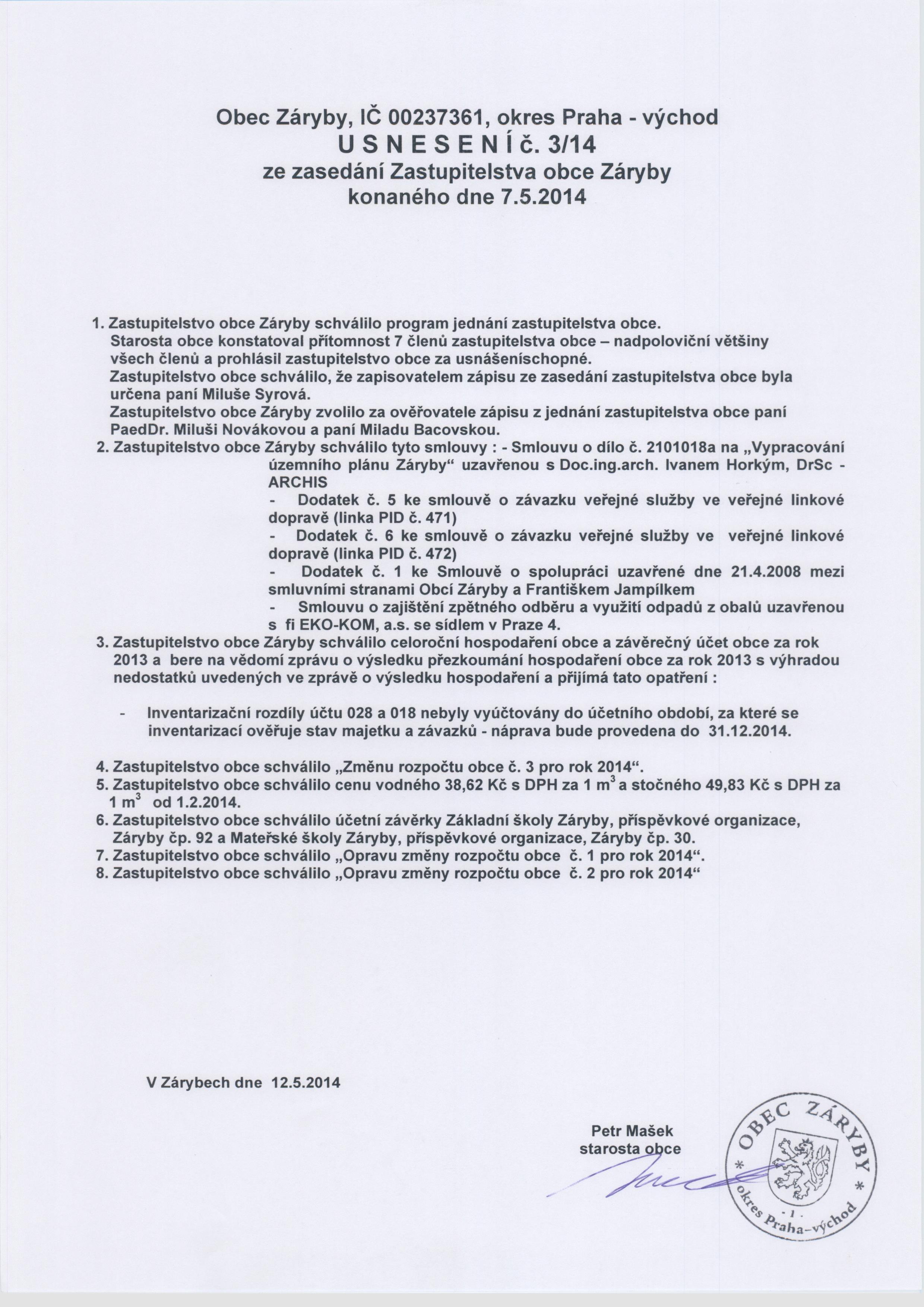 - Usnesení č. 3/14 ze zasedání zastupitelstva obce ze dne 7.5.2014